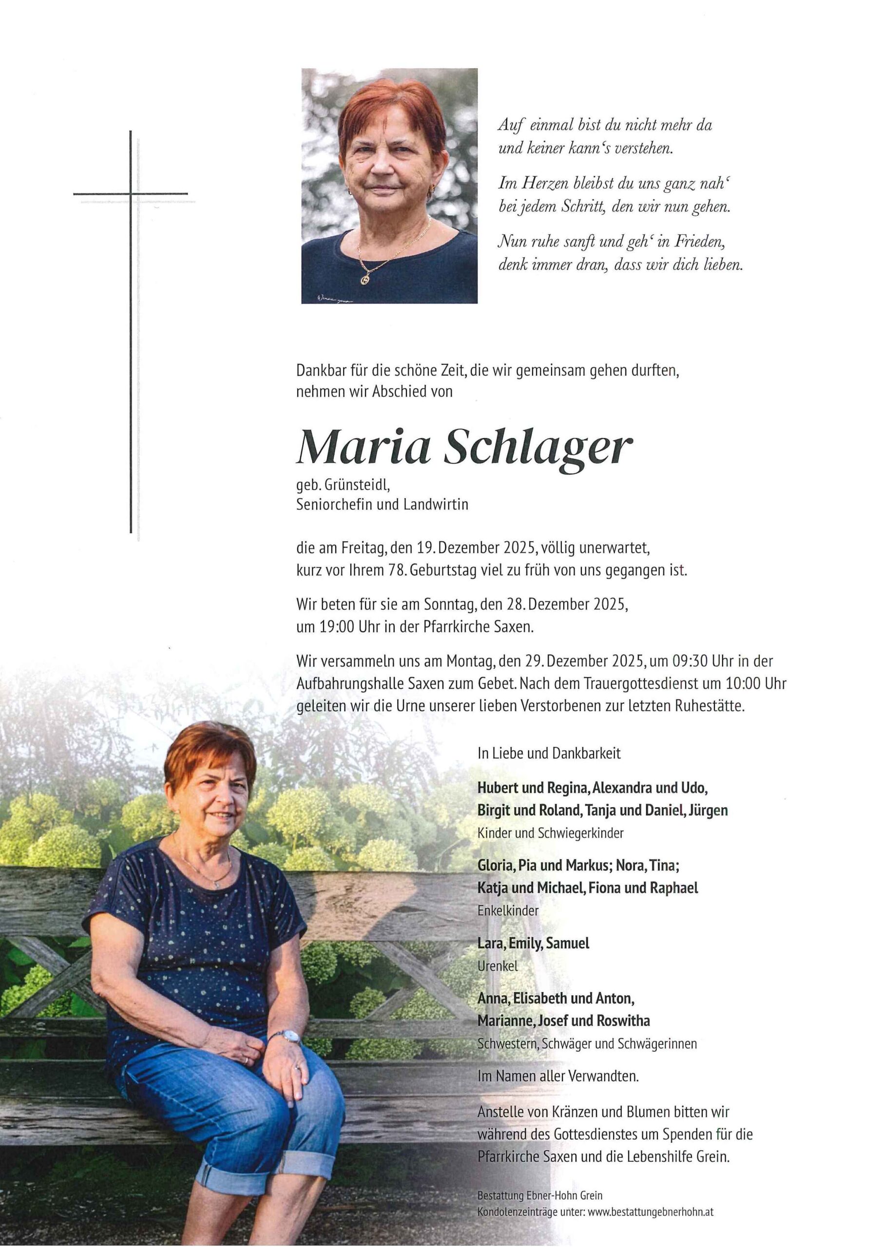 Mit großer Traurigkeit nehmen wir Abschied von unserer Mama, Oma und Uroma Maria Schlager.